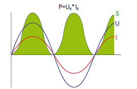 die Multiplikation der Effektivwerte von Strom und Spannung berechnet