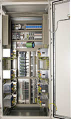 - Ein Schaltschrank beinhaltet die komplette Hardware für die Prüfung von mehreren Prüflingen unterschiedlicher Leistung, die simultan auf der Prüfeinrichtung gemessen und protokolliert werden können.