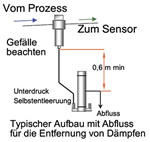- Alle Leitungen sollten üblicherweise Gefälle aufweisen in Richtung des Tanks oder Prozessbehälters aus dem die Probe entnommen wird.